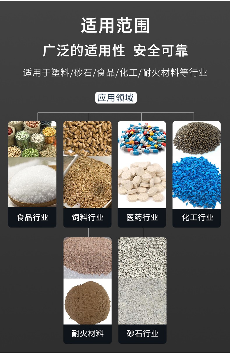 【物料要求(qiu)】:顆(ke)粒度物(wu)料,如食品,化工,建築類物料原料