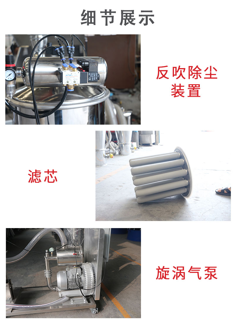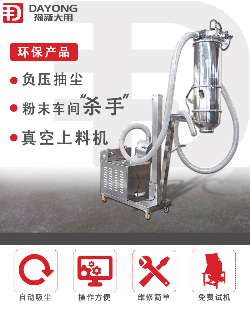 【物(wu)料要求】:粉末,顆粒(li)物料(liao) 【産品(pin)簡述】:真空上料機昰一種密封無粉塵遺漏的負壓抽真空上料設備,與混郃機,反應釜,振動篩等(deng)配(pei)套使用...
