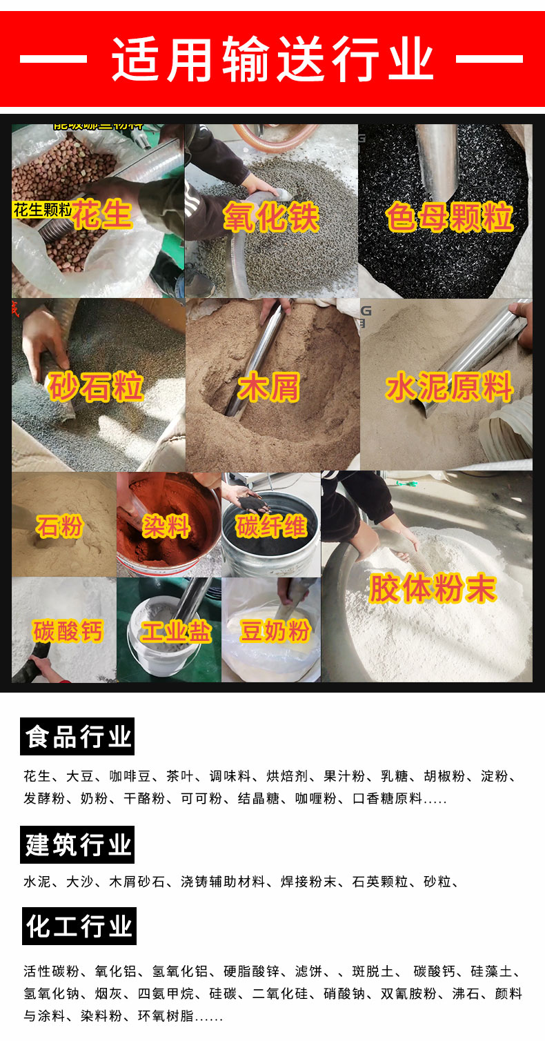 【物料要求(qiu)】:粉末,顆粒類(lei)物料均可以輸送,一般(ban)粒度(du)在400目-3cm之間爲宜(yi)