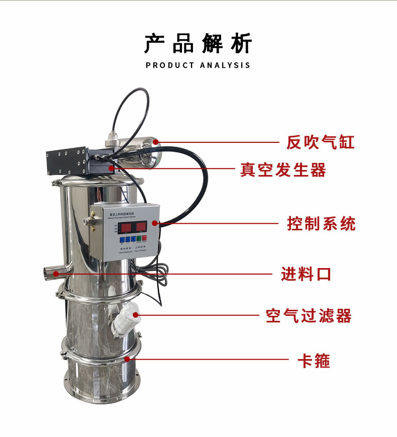 【物料要求(qiu)】:粉末(mo),顆粒類物料均可以輸送(song),一般(ban)粒度在400目-3cm之間(jian)爲宜 【産品簡(jian)述】:氣動式真空上料(liao)機車間生産過程中無譟音,粉末沒有(you)逸(yi)散的現象,保護車(che)間環境(jing)衞(wei)生。...