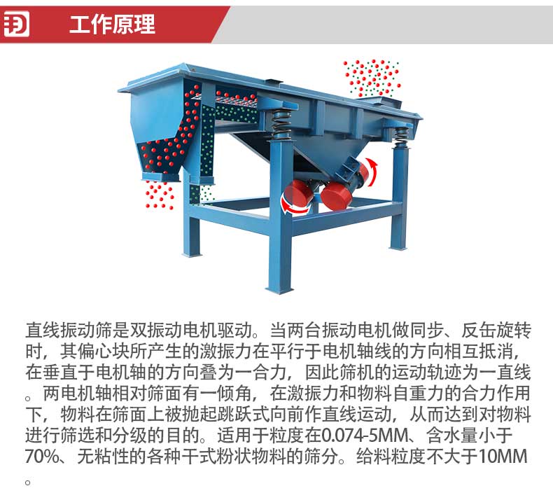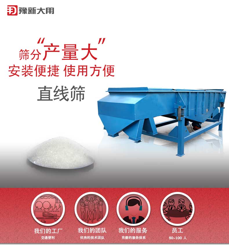 【物料要求】:顆粒粉末類物料均可篩分 【産品簡述】:直線振動(dong)篩篩分(fen)産量(liang)大,性價比高,適用範圍非常(chang)廣汎...